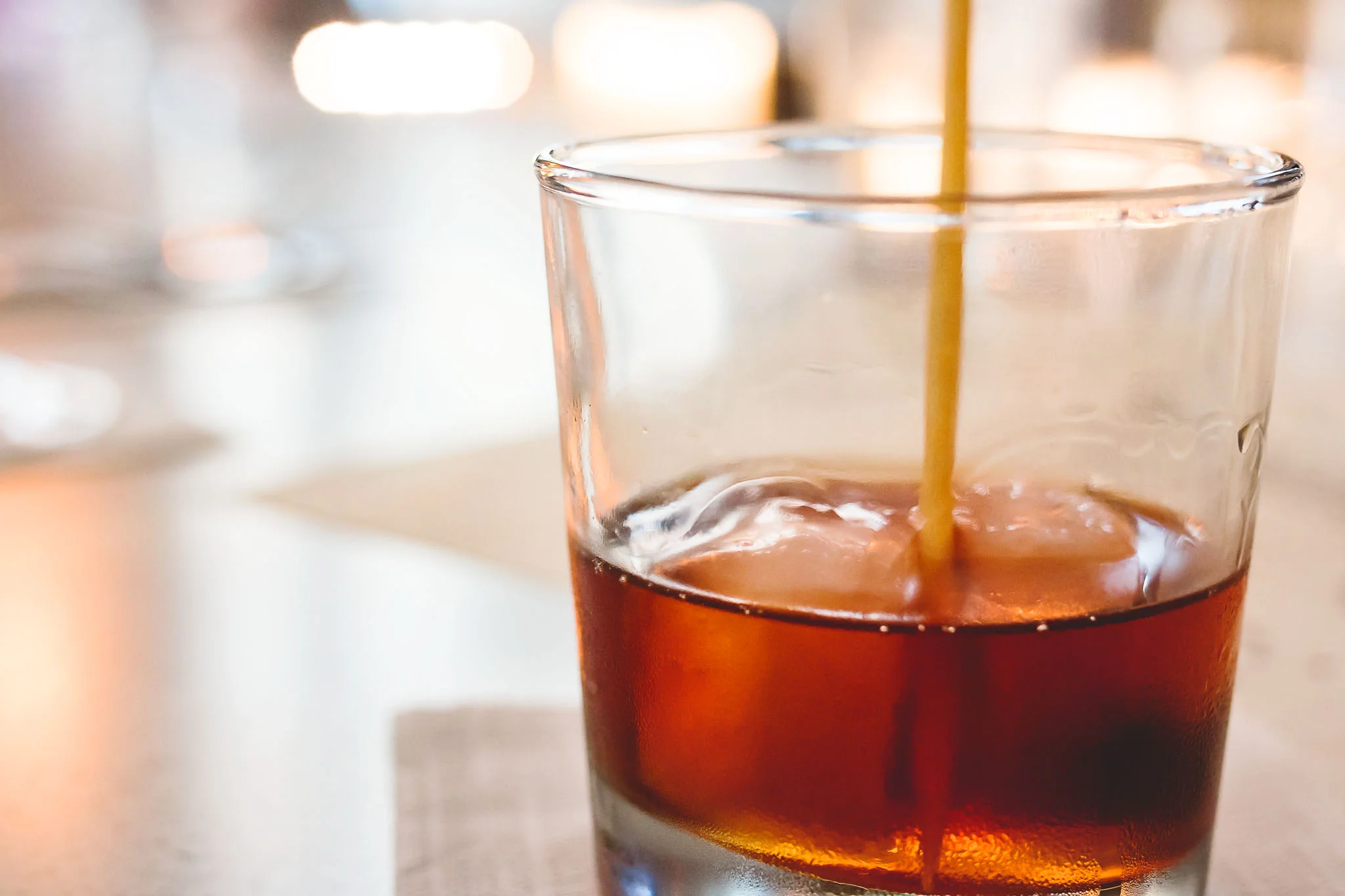The bartending staff was abuzz with activity behind the bar, and everyone seemed to have their purpose; crushing ice to spec., preparing syrups and garnish, dishwashing, shining glass, and refilling the Bulleit Bourbon water bottles set at each table setting.